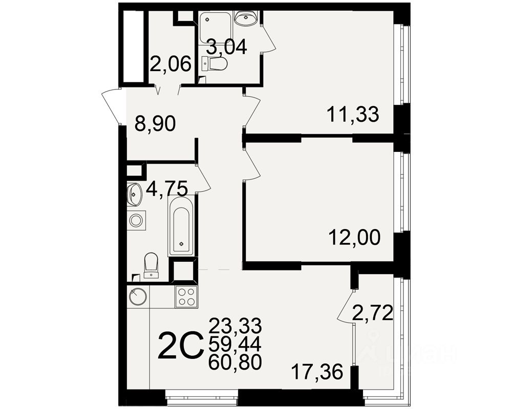 Общая площадь59,44 м2