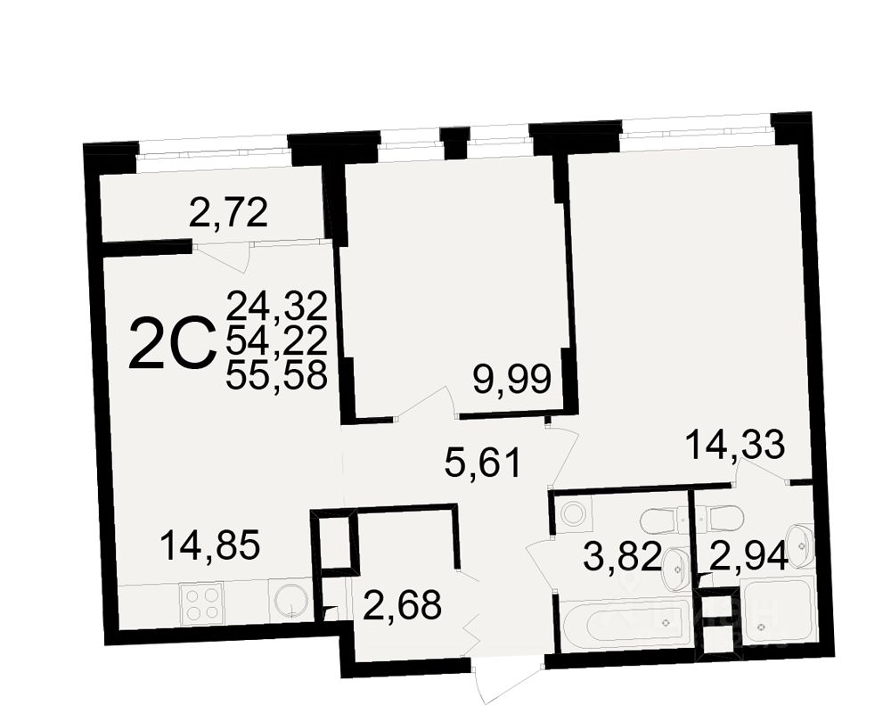 Общая площадь54,22 м2