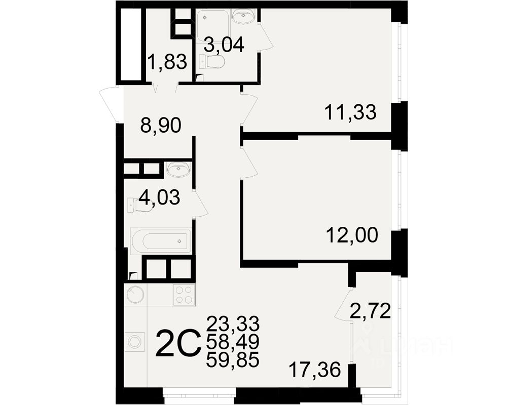 Общая площадь58,49 м2