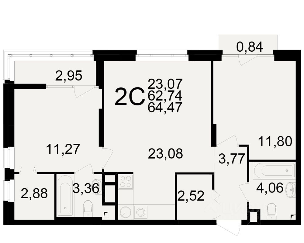 Общая площадь62,74 м2