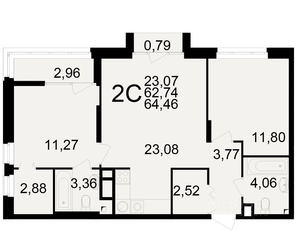 Общая площадь62,74 м2