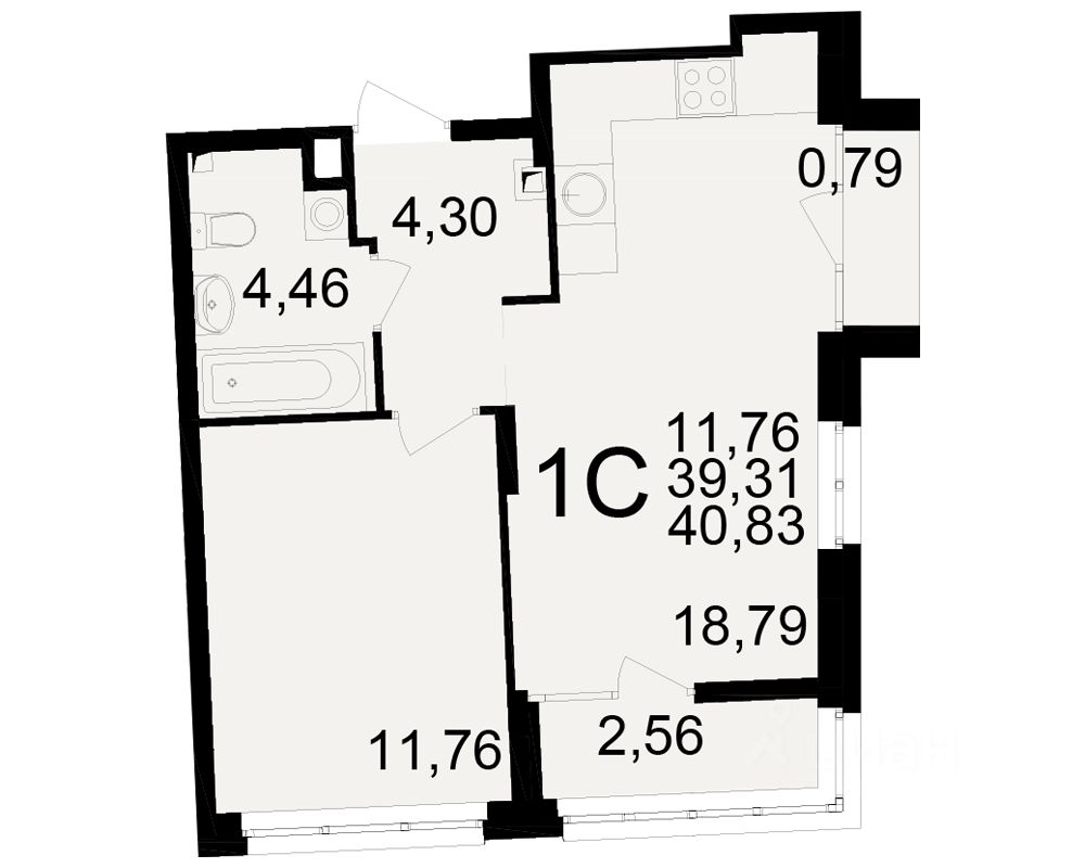 Общая площадь39,31 м2