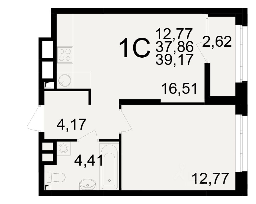 Общая площадь37,86 м2