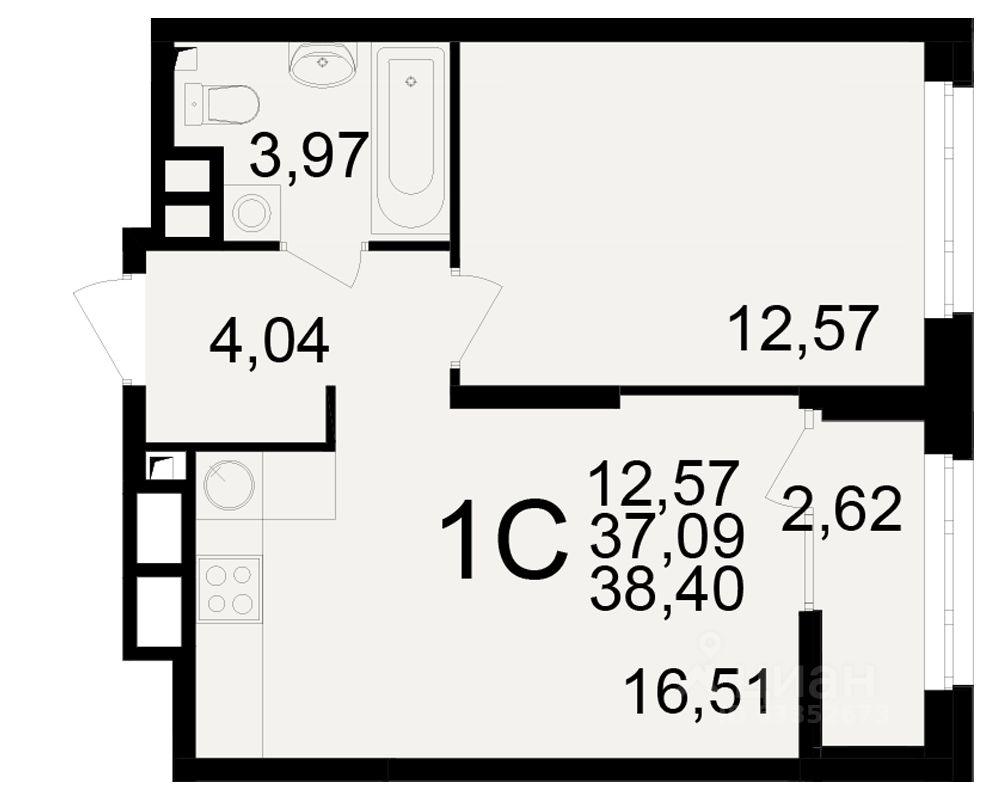 Общая площадь37,09 м2