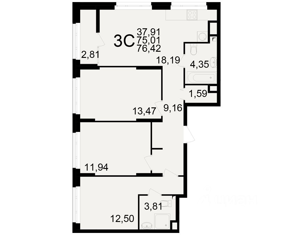 Общая площадь75,01 м2