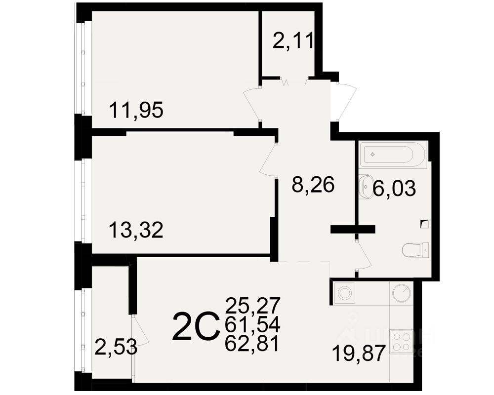 Общая площадь61,54 м2