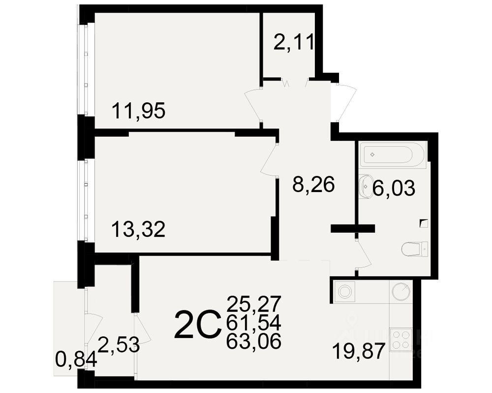 Общая площадь61,54 м2