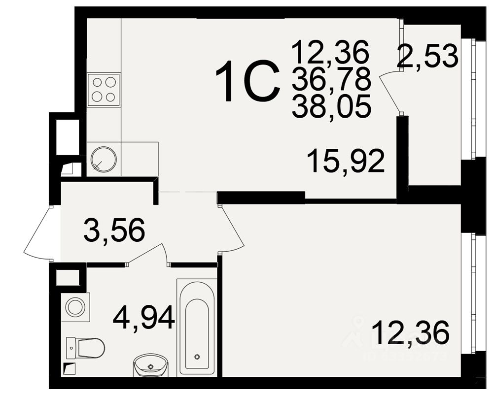Общая площадь36,78 м2