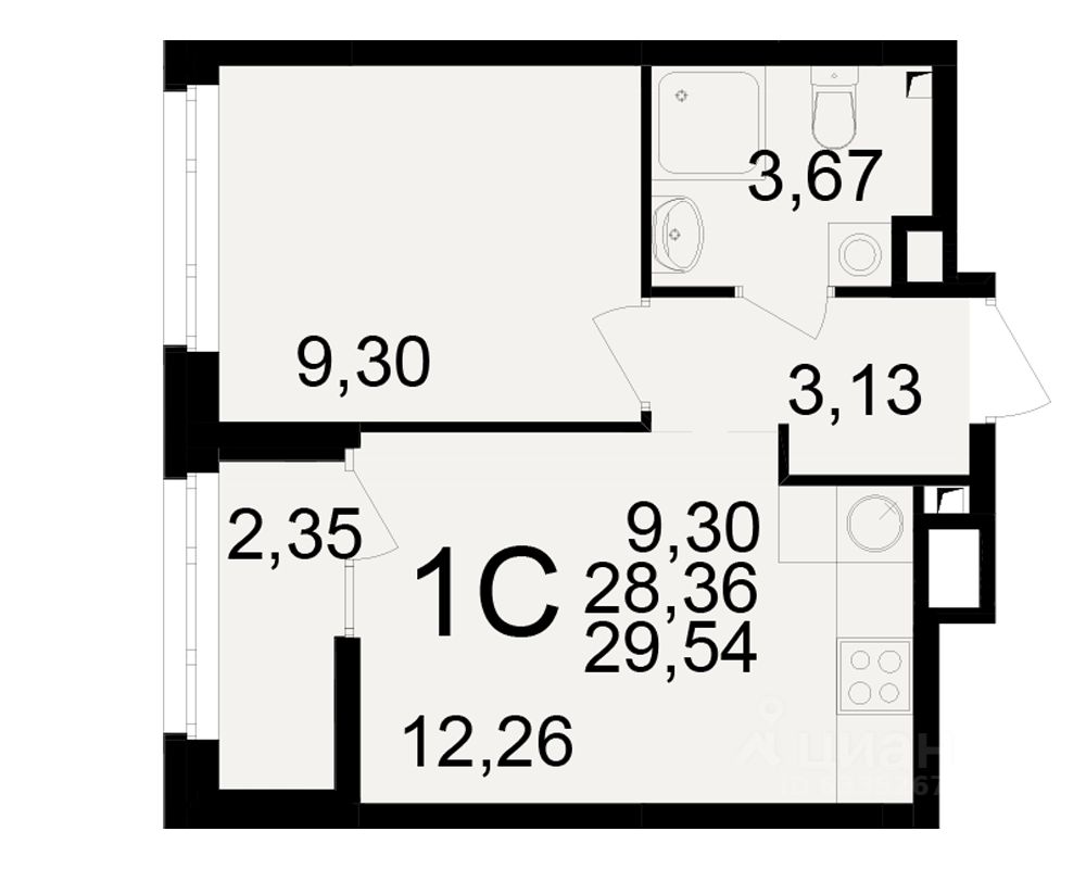Общая площадь28,36 м2