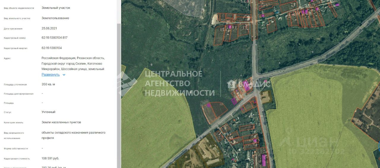 Переуступка права аренды земельного участка в городе Скопин, микрорайон Коготково , Шоссейная улица, земельный участок 3, общая площадь 350 кв.м.