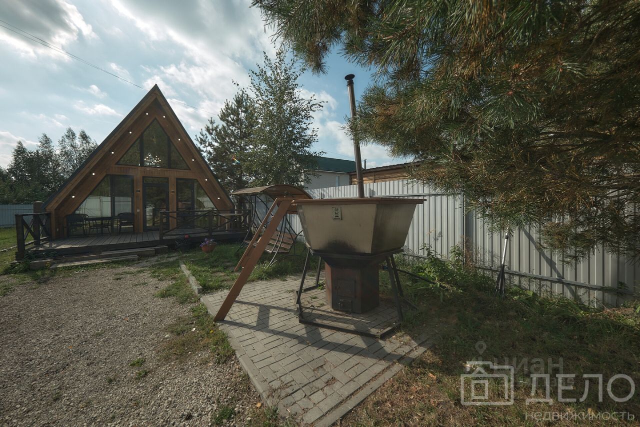 На участке общей площадью 15,86 кв.м. расположены два отдельно стоящих дома (основной 213,48 кв.м и А-фрейм 65 кв.м), баня, зоны барбекю, чан с подогревом, бассейн и костровая зона.