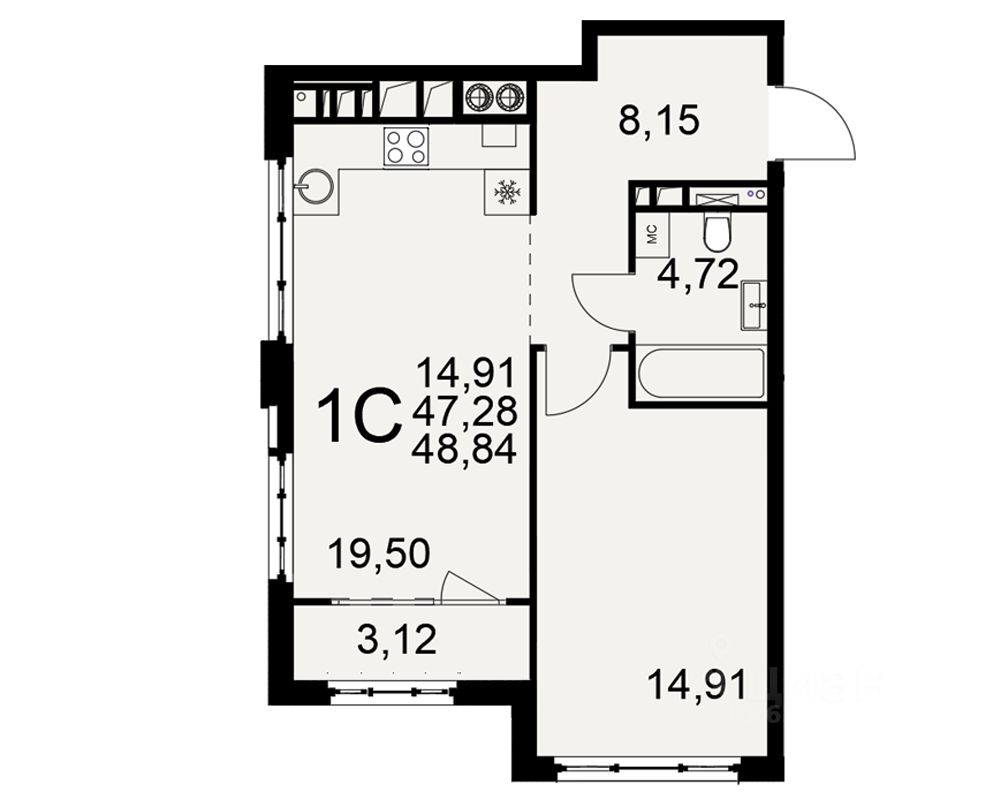 Общая площадь47,28 м2