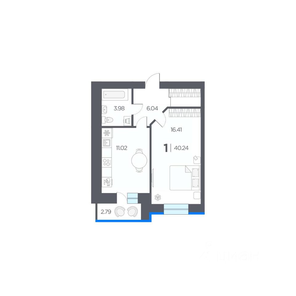 Общая площадь40,24 м2