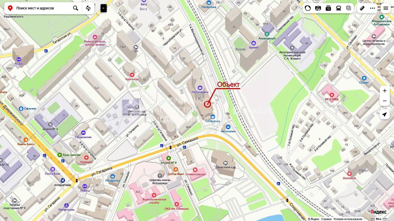 Адрес: г. Рязань, ул. 1-я Железнодорожная, дом 56, Центр города.
