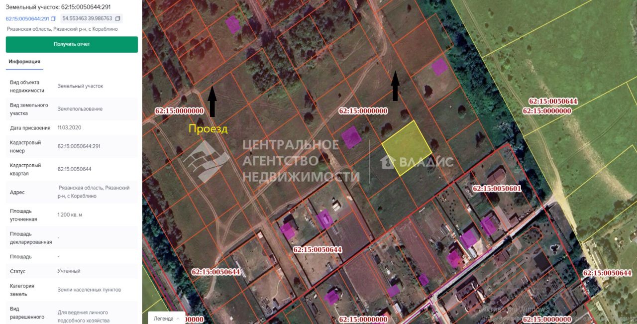 Площадь участка 12 соток, кадастровый номер 62:15:0050644:291.