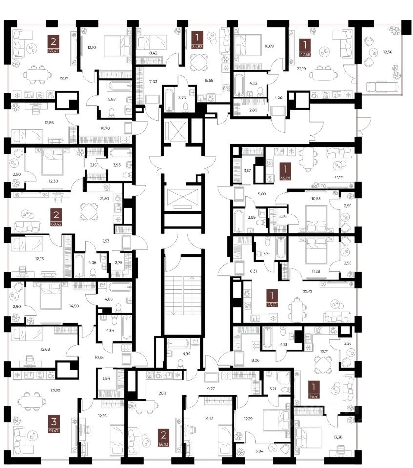 Общая площадь69,42 м2