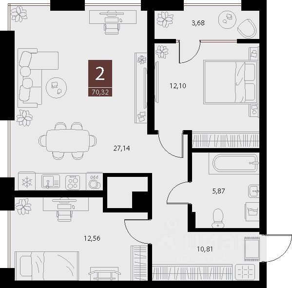 Общая площадь70,32 м2