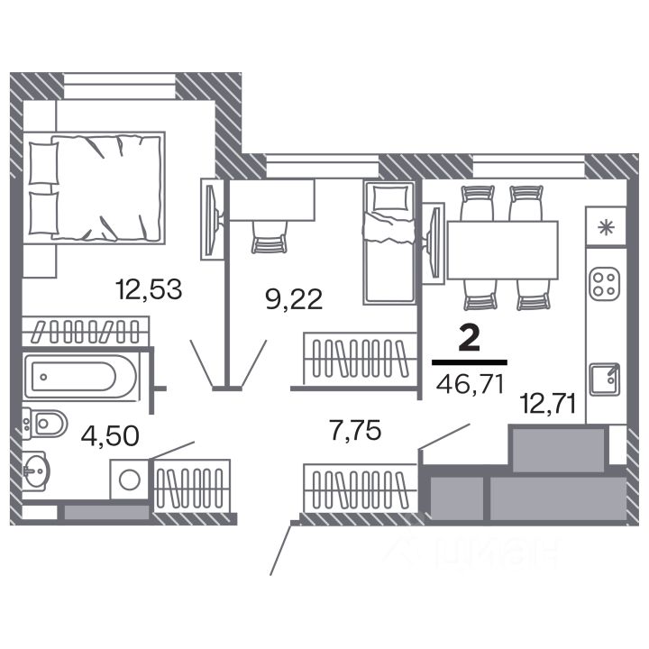 Продаётся 2-комнатная квартира в строящемся доме (Корпус 1), срок сдачи: IV-кв. 2028, общей площадью 46.71 кв.м., на 24 этаже. Новый жилой комплекс ''по ул.Быстрецкая'' от застройщика ''Северная Компания'' расположен по адресу Россия, Рязань, Быстрецкая улица.