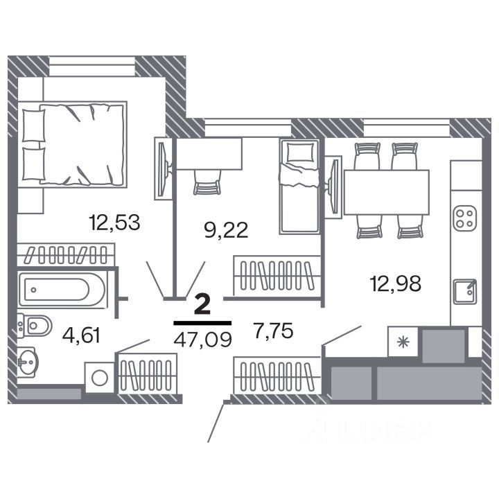 Продаётся 2-комнатная квартира в строящемся доме (Корпус 1), срок сдачи: IV-кв. 2028, общей площадью 47.09 кв.м., на 12 этаже. Новый жилой комплекс ''по ул.Быстрецкая'' от застройщика ''Северная Компания'' расположен по адресу Россия, Рязань, Быстрецкая улица.