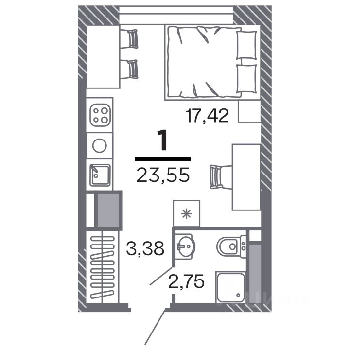 Продаётся 1-комнатная квартира в строящемся доме (Корпус 1), срок сдачи: IV-кв. 2028, общей площадью 23.55 кв.м., на 22 этаже. Новый жилой комплекс ''по ул.Быстрецкая'' от застройщика ''Северная Компания'' расположен по адресу Россия, Рязань, Быстрецкая улица.