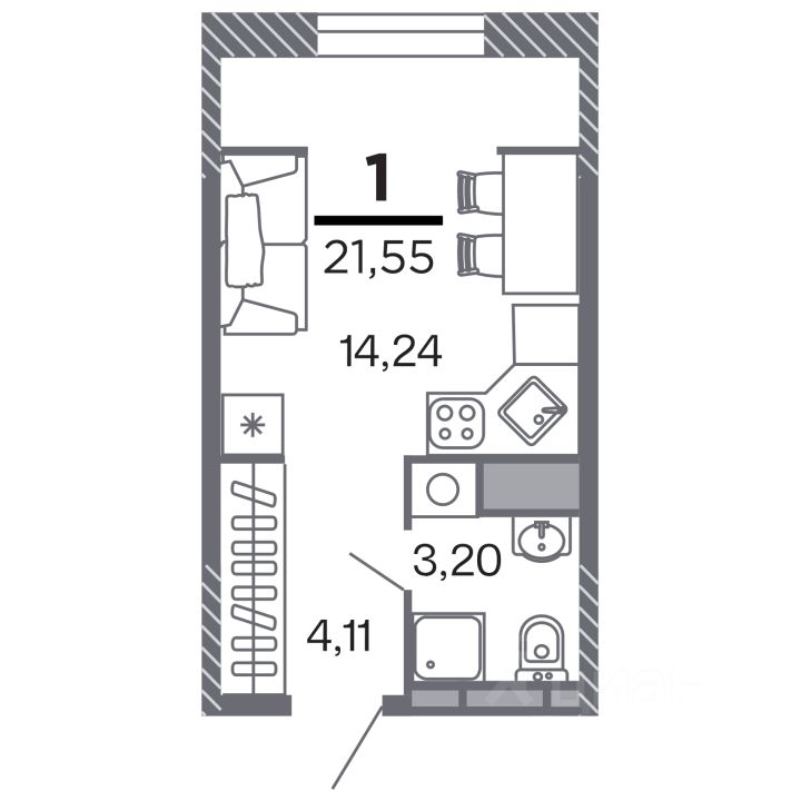 Продаётся 1-комнатная квартира в строящемся доме (Корпус 1), срок сдачи: IV-кв. 2028, общей площадью 21.55 кв.м., на 3 этаже. Новый жилой комплекс ''по ул.Быстрецкая'' от застройщика ''Северная Компания'' расположен по адресу Россия, Рязань, Быстрецкая улица.