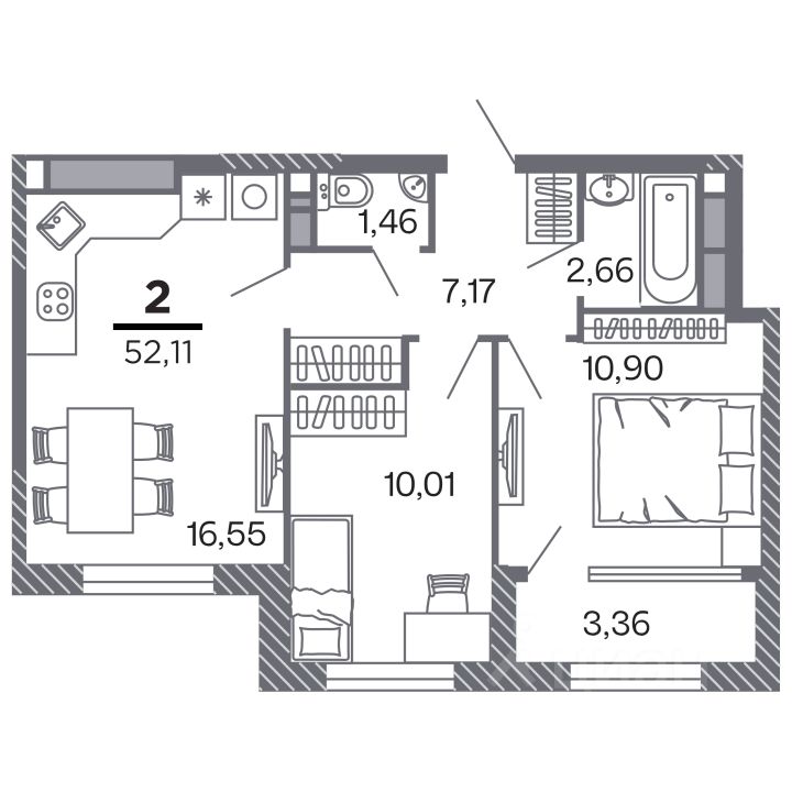 Продаётся 2-комнатная квартира в строящемся доме (Корпус 1), срок сдачи: IV-кв. 2028, общей площадью 52.11 кв.м., на 14 этаже. Новый жилой комплекс ''по ул.Быстрецкая'' от застройщика ''Северная Компания'' расположен по адресу Россия, Рязань, Быстрецкая улица.