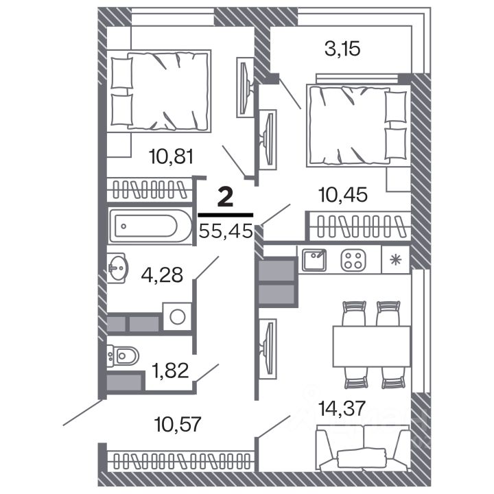 Продаётся 2-комнатная квартира в строящемся доме (Корпус 1), срок сдачи: IV-кв. 2028, общей площадью 55.45 кв.м., на 12 этаже. Новый жилой комплекс ''по ул.Быстрецкая'' от застройщика ''Северная Компания'' расположен по адресу Россия, Рязань, Быстрецкая улица.