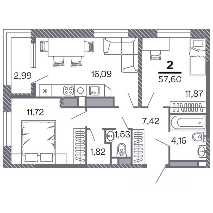 Продаётся 2-комнатная квартира в строящемся доме (Корпус 1), срок сдачи: IV-кв. 2028, общей площадью 57.6 кв.м., на 22 этаже. Новый жилой комплекс ''по ул.Быстрецкая'' от застройщика ''Северная Компания'' расположен по адресу Россия, Рязань, Быстрецкая улица.