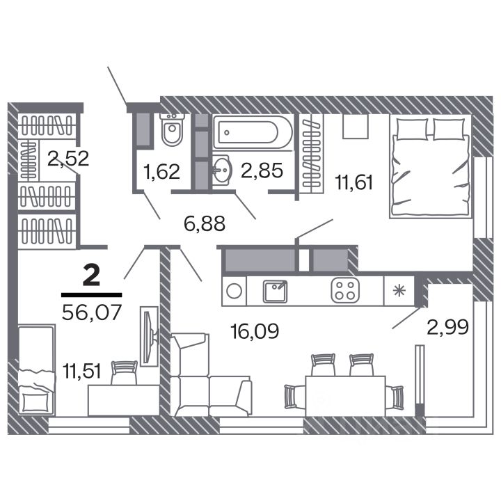 Продаётся 2-комнатная квартира в строящемся доме (Корпус 1), срок сдачи: IV-кв. 2028, общей площадью 56.07 кв.м., на 20 этаже. Новый жилой комплекс ''по ул.Быстрецкая'' от застройщика ''Северная Компания'' расположен по адресу Россия, Рязань, Быстрецкая улица.