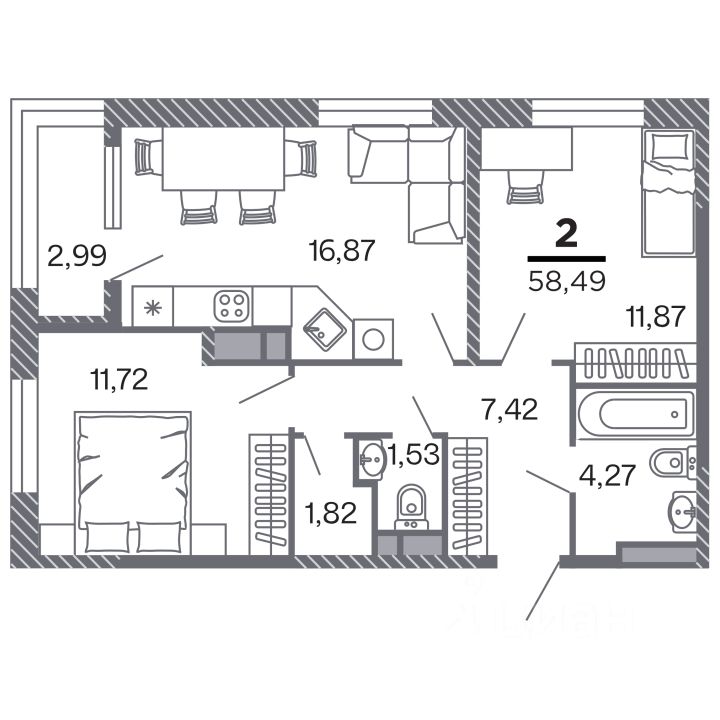 Продаётся 2-комнатная квартира в строящемся доме (Корпус 1), срок сдачи: IV-кв. 2028, общей площадью 58.49 кв.м., на 6 этаже. Новый жилой комплекс ''по ул.Быстрецкая'' от застройщика ''Северная Компания'' расположен по адресу Россия, Рязань, Быстрецкая улица.