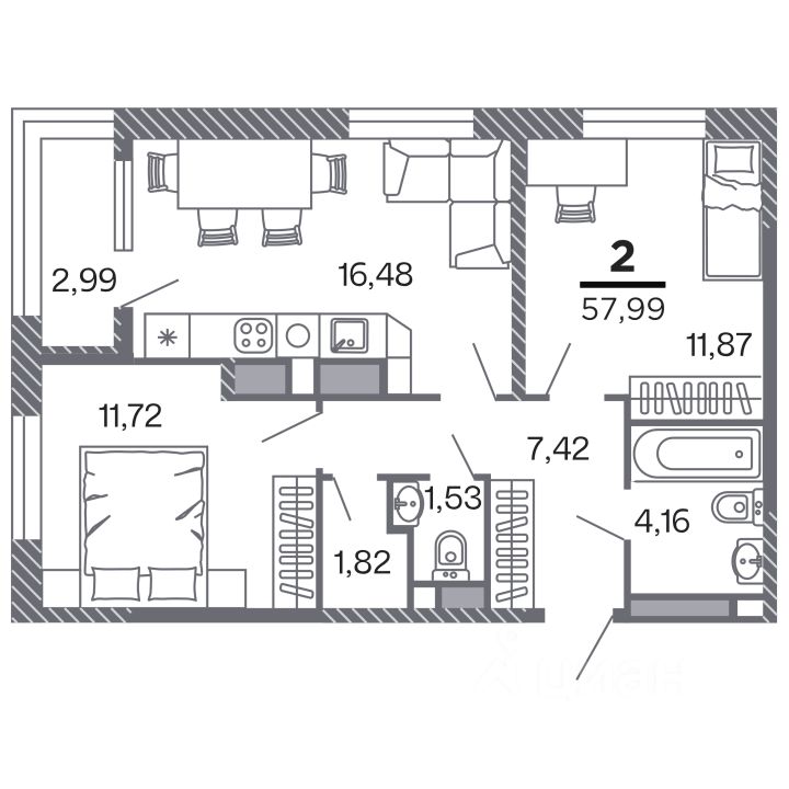 Продаётся 2-комнатная квартира в строящемся доме (Корпус 1), срок сдачи: IV-кв. 2028, общей площадью 57.99 кв.м., на 15 этаже. Новый жилой комплекс ''по ул.Быстрецкая'' от застройщика ''Северная Компания'' расположен по адресу Россия, Рязань, Быстрецкая улица.