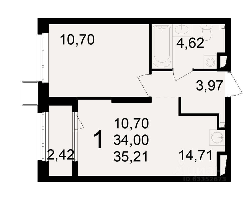 Жилая площадь10,7 м2