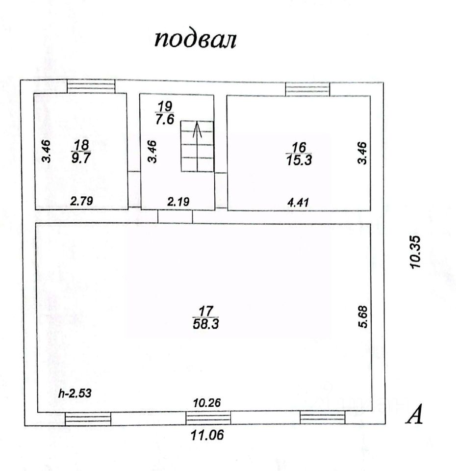 цоколь: котельная 9,7 м.кв., кладовая 15,3 м.кв, помещение свободного назначения 58,6 м.кв.