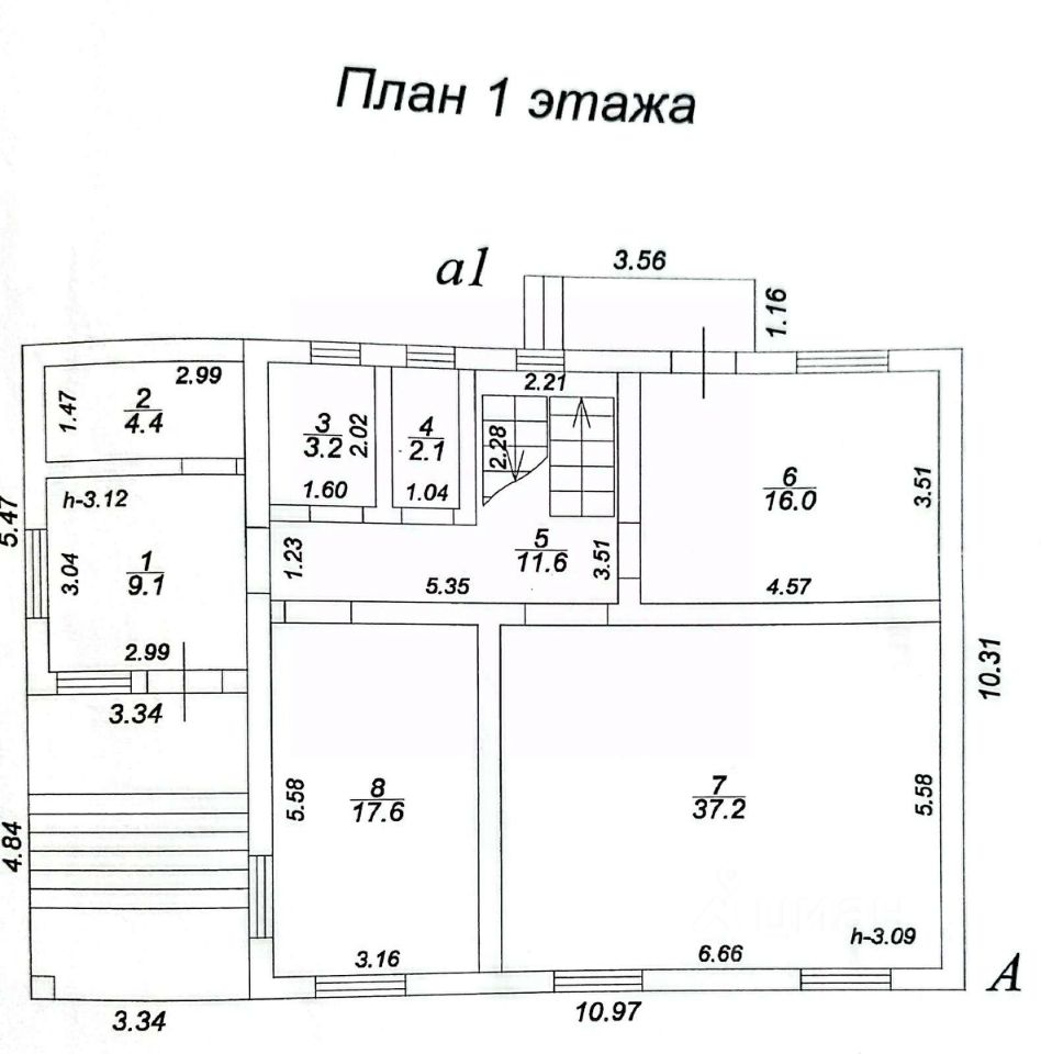 Высокие потолки: цокольный этаж 3 м, первый этаж 3.10 м, второй этаж 2.80 м.