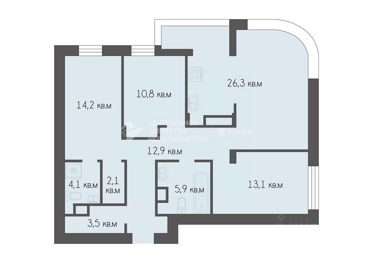 Удобная планировка, изолированные комнаты, кухня гостиная 27 кв.м.