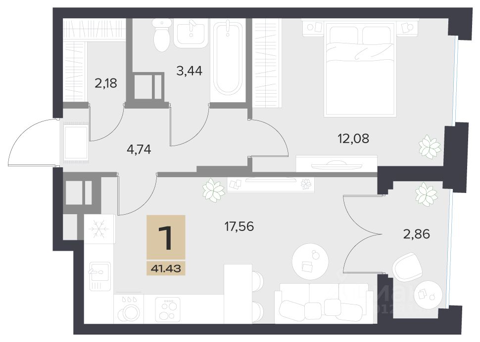 Общая площадь41,43 м2