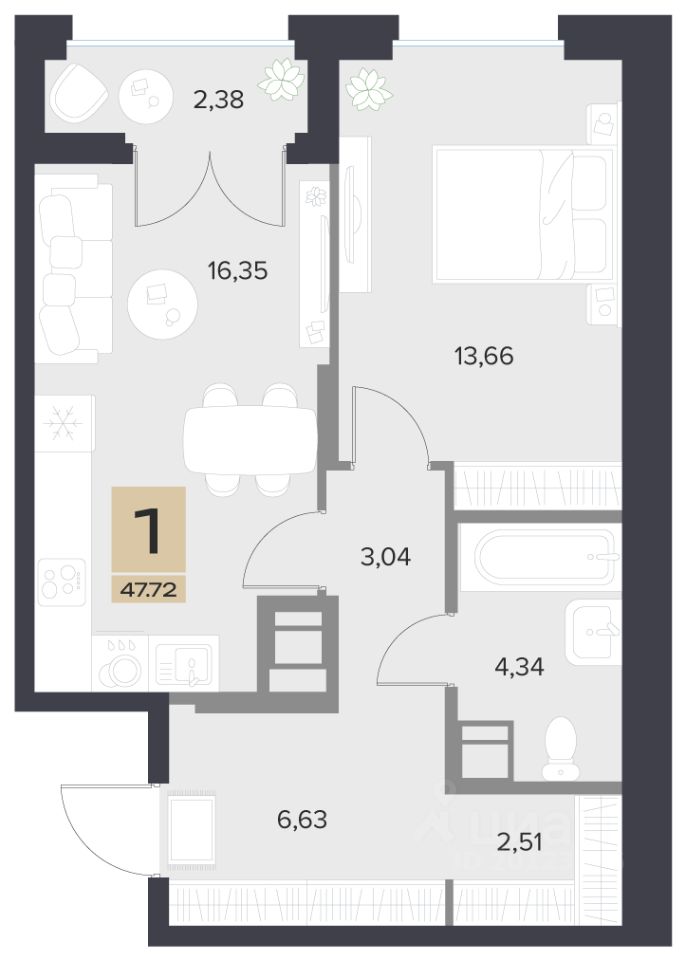 Продаётся 1-комнатная квартира в строящемся доме (Корпус 1), срок сдачи: IV-кв. 2028, общей площадью 47.72 кв.м., на 4 этаже. В мире, где все стремится вверх, мы переосмыслили понятие истинного комфорта. ''Голландия Верхний сад'' - это этажность, сомасштабная человеку, редкая и дарящая ощущение простора. Это осознанный выбор в пользу человека и его комфортного пространства для жизни. Здесь город постепенно становится домом, где можно наслаждаться уединенностью и каждое утро делиться улыбкой с соседями. Дом, который вдохновляет. ''Голландия Верхний сад'' сочетает в себе сбалансированную инфраструктуру и интересы каждого жителя. Здесь каждый резидент сможет сосредоточится на собственном благополучии и посвятить время тому, что действительно важно.