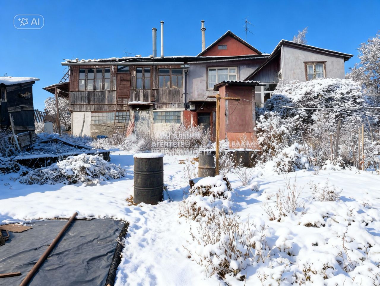 - Дом кирпичный, прочный и долговечный, с деревянной пристройкой.
