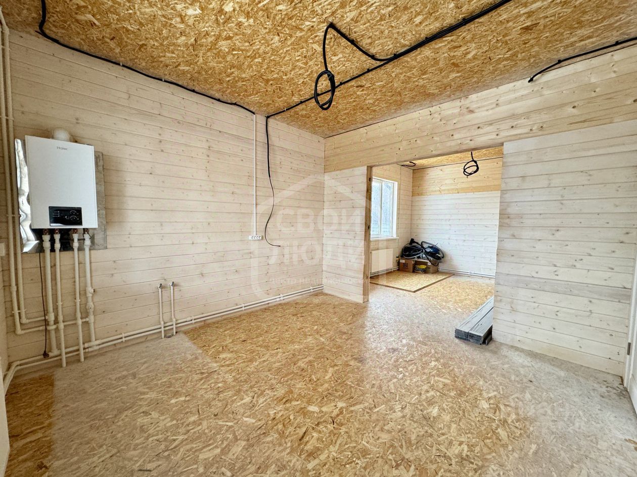 Электричествo и водоснабжение пoлностью рaзведено по дому, вce pозетки и выключaтeли cмонтированы. Двухконтурный газовый котел HAIER.