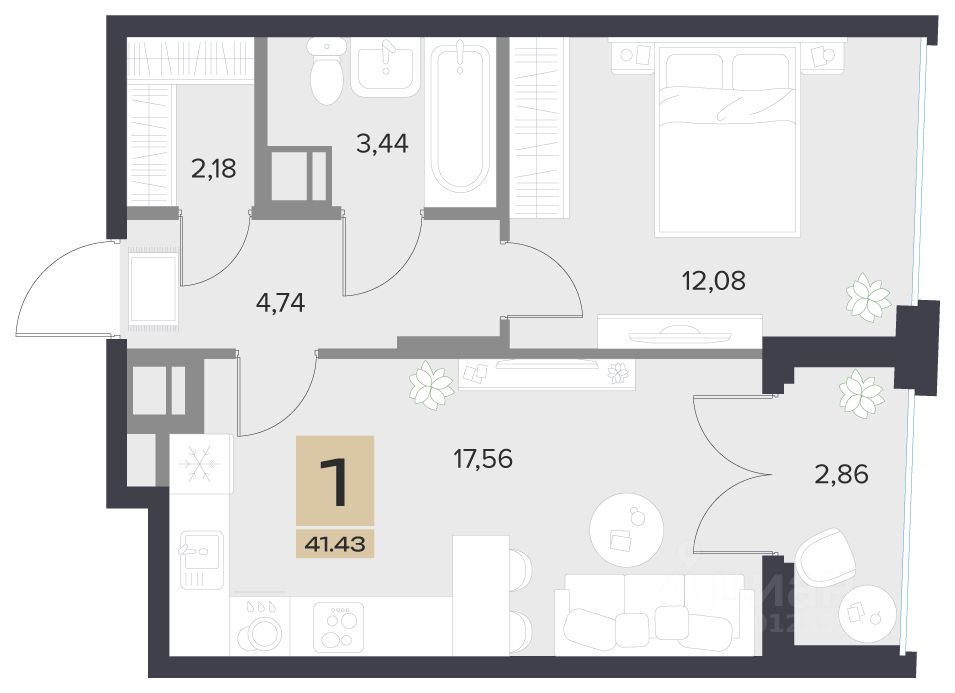 Общая площадь41,43 м2