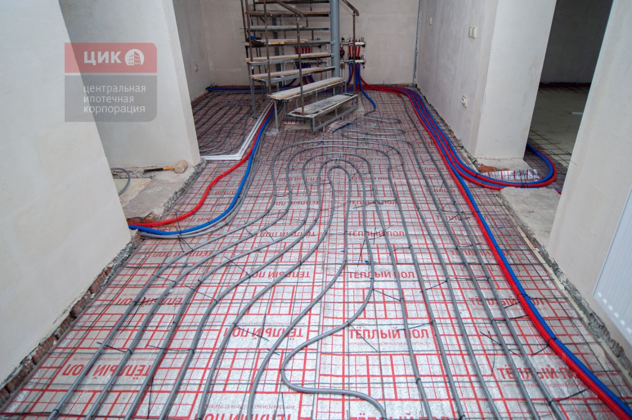 -По периметру всего этажа произведен монтаж теплого пола.