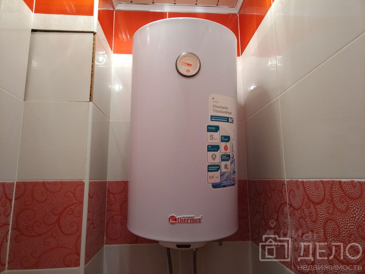 Санузел раздельный в плитке. Установлен водонагреватель. В квартире имеется небольшая, но вместительная гардеробная комната с оборудованными полками.