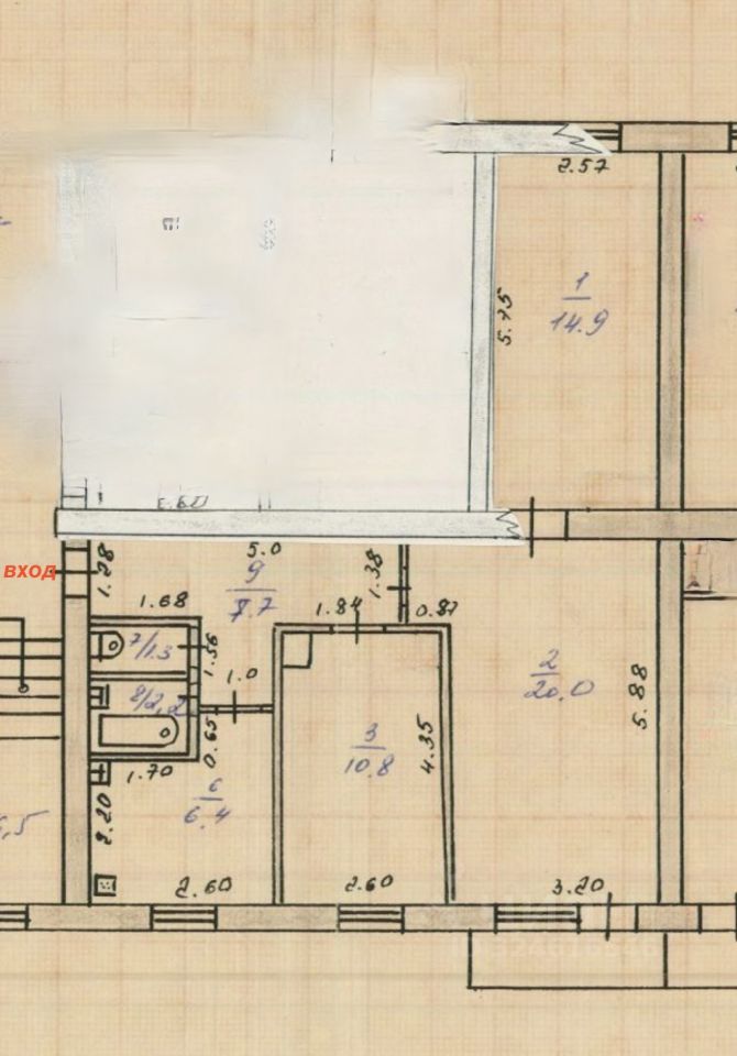 Продается прекрасная квартира, площадь комнат 20/14,9/10,8 м2, кухня 6,4 м2.