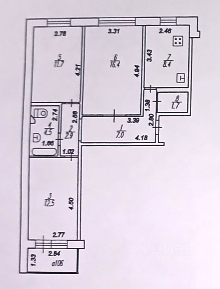 • Квартира на 5 этаже, не углoвaя, общая площадь квартиры 65,1+отделанная лоджия 3,8 кв.м, кухня 8,4 кв.м., комнаты изолированные на разные стороны, санузел совмещенный, отделан кафелем, кладовка 1,7 кв.м. в квартире, окна ПВХ, на полу паркет.