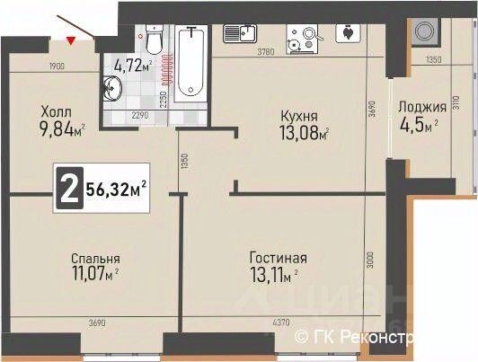 Общая площадь56,32 м2
