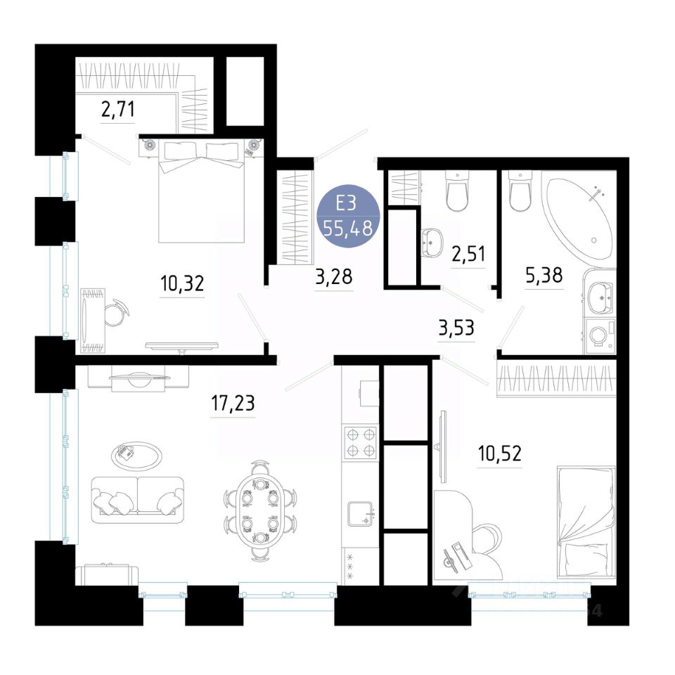 Общая площадь55,48 м2