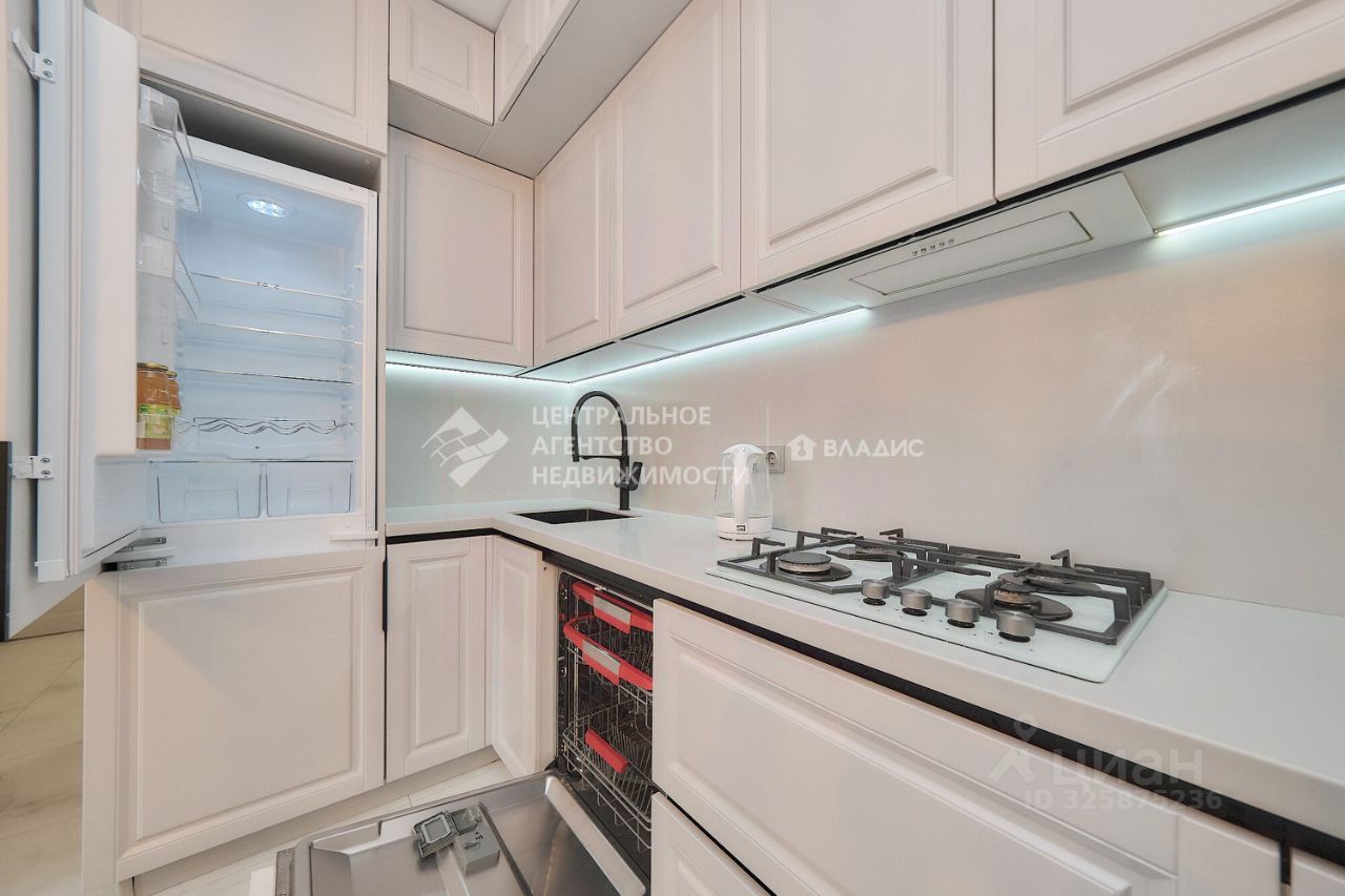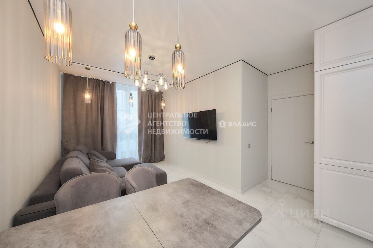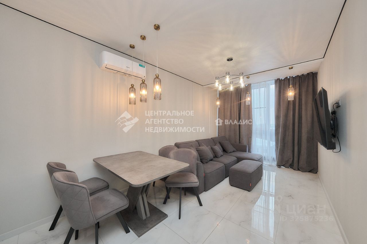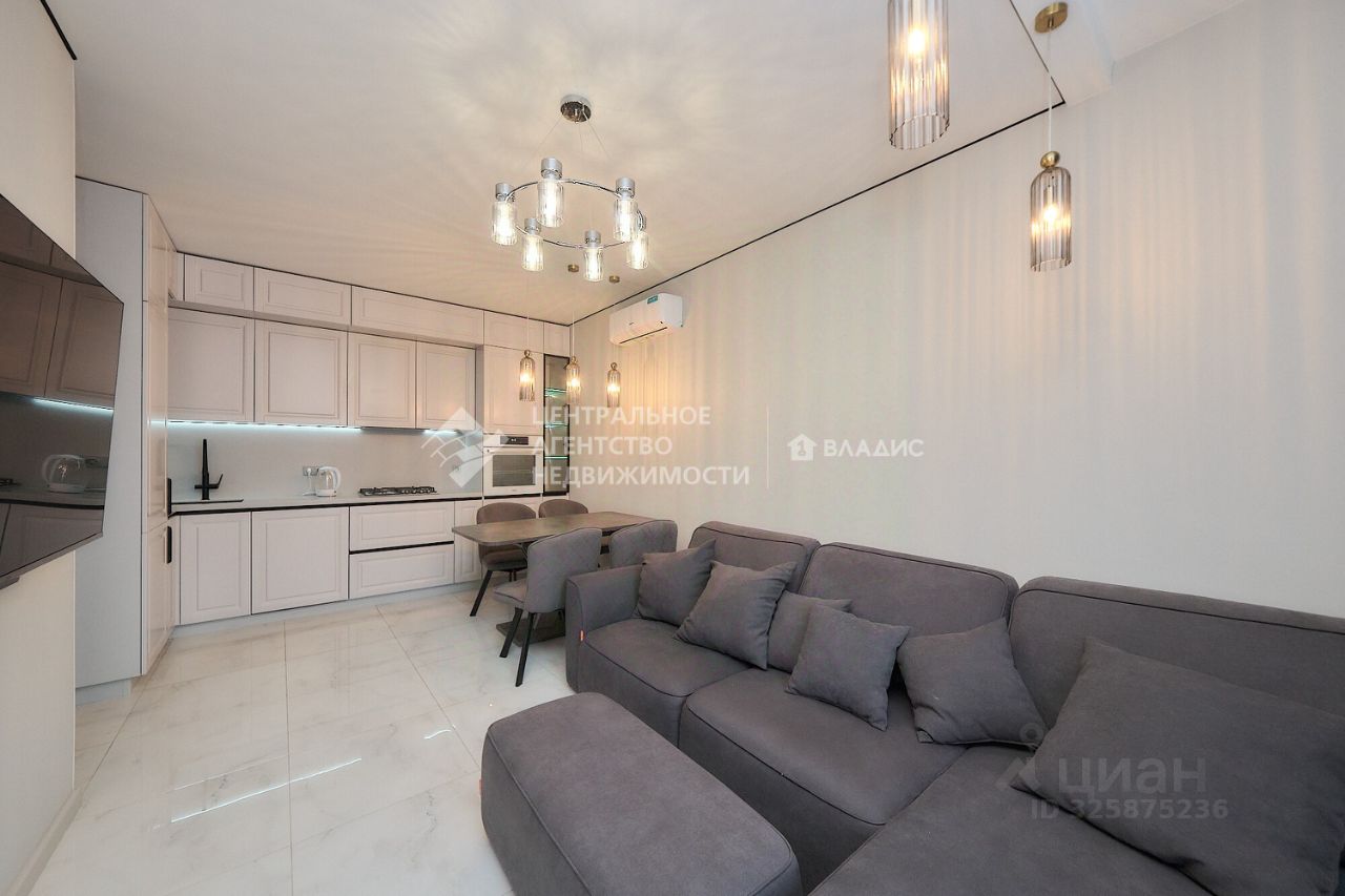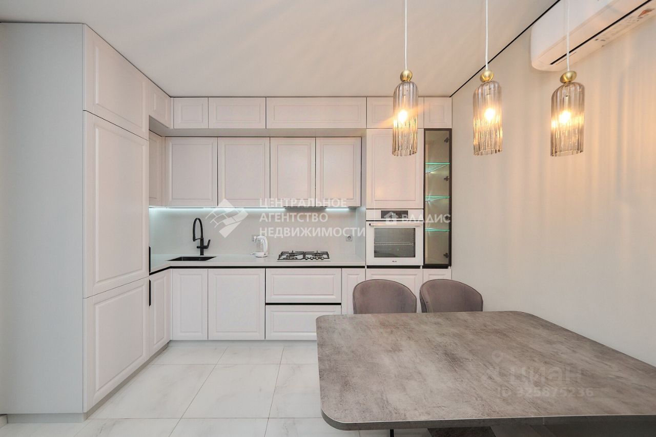 Просторная кухня-гостиная станет местом для семейных ужинов и дружеских посиделок. Дизайнерский ремонт выполнен с учётом последних тенденций в интерьере, создавая атмосферу уюта и комфорта.