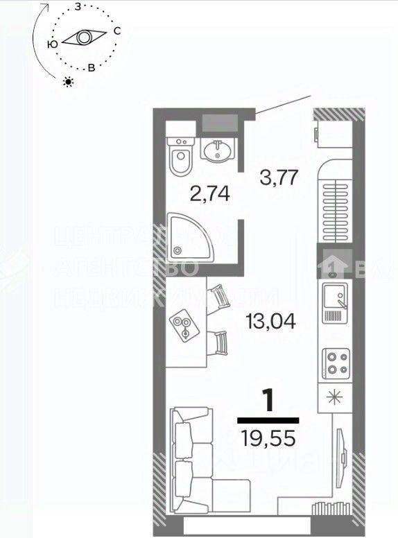 Общая площадь19,55 м2