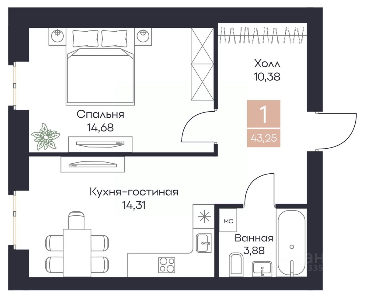 продам 1-к, Поляны7 893 125 ₽