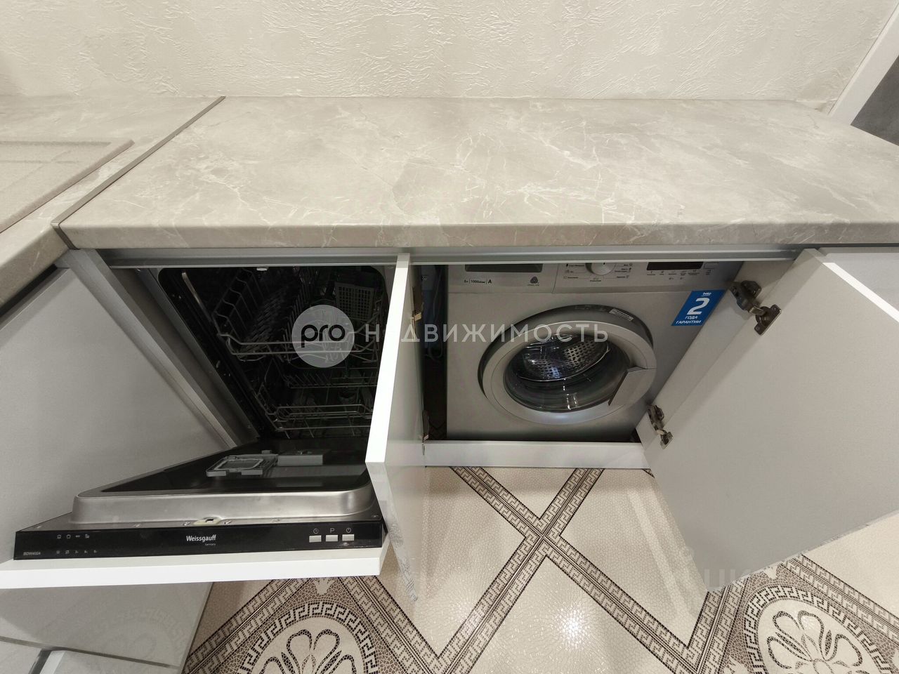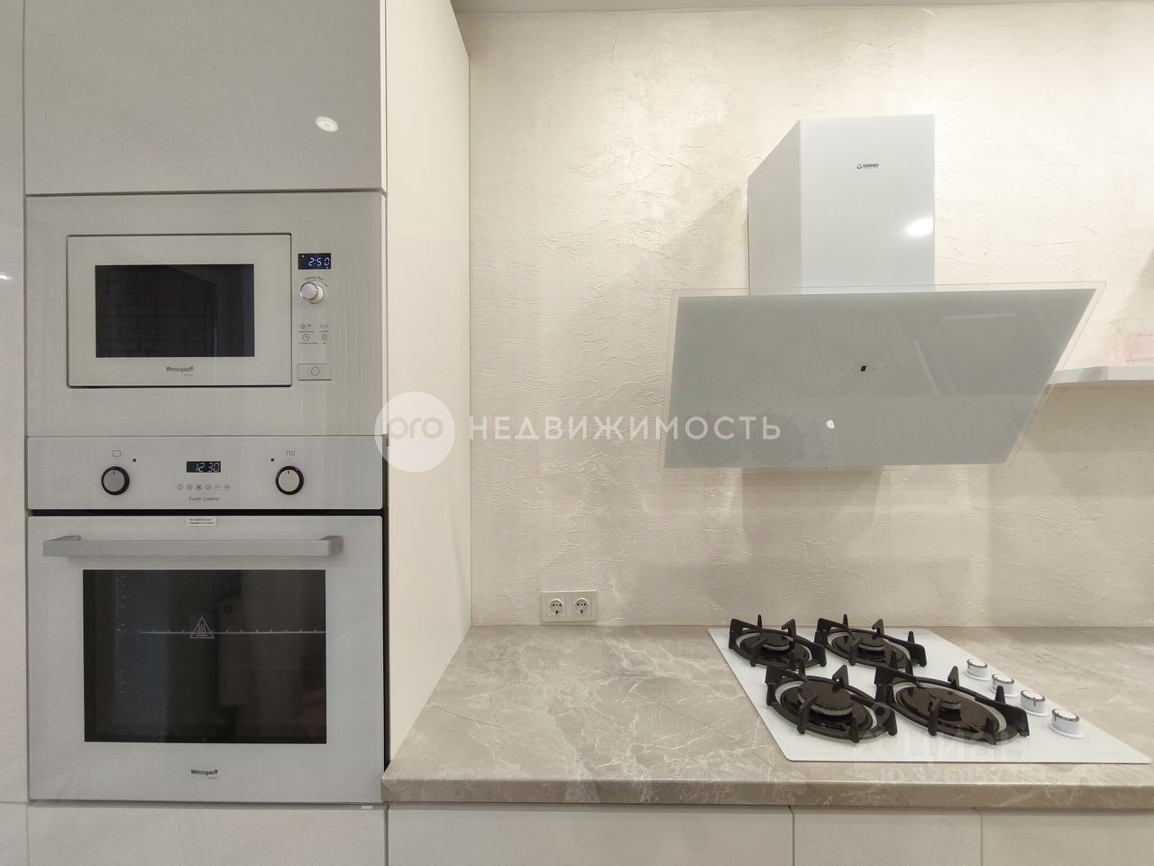 Входная дверь Ле-Гран. Встроенная кухонная техника Weissgauff. Двухстворчатый холодильник Ginzzu. Газовый котел Viessmann. Кондиционер. Вся необходимая мебель в наличии.